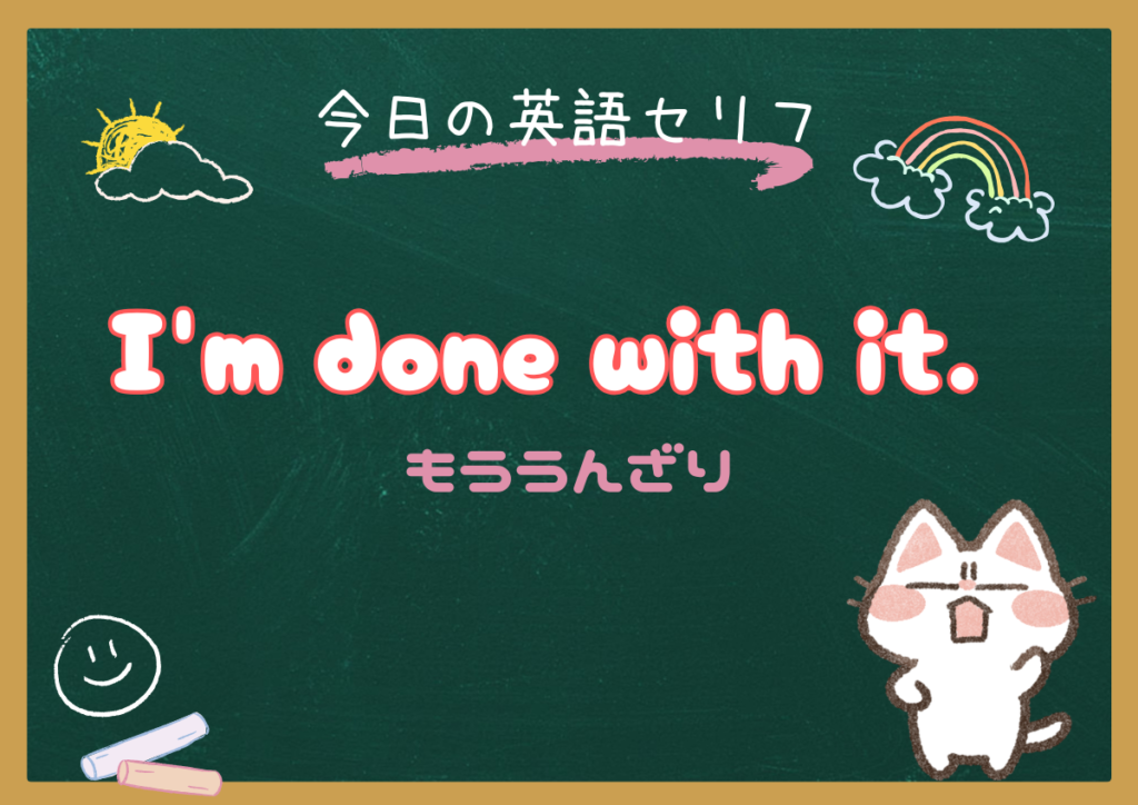 この「done with it」というフレーズ、シンプルですが、「もうこりごり・うんざり・終わりにする」という意味の感情表現の定番フレーズです